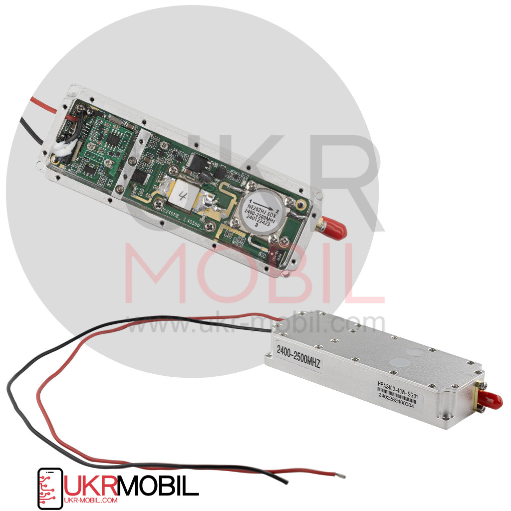 Модуль помех (jammer) 2.4 GHz (2400-2500 mHz), Gan 40W, 45-46 dBi, SMA предназначен для подавления сигналов ISM, радиоконтроля и управления дронами, видеосигналов БПЛА и Wi-Fi. Он работает в диапазоне 2.4 GHz, используя технологию GaN, и имеет выходную мощность 40 Вт. Модуль может работать при температурах от -10 до +55°C, что делает его идеальным для различных условий.